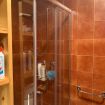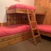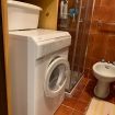 The apartment has two bedrooms: one double and one with three single beds arranged in a bunk configuration, perfect for families or groups of friends. The bathroom is fully equipped with a shower and private washer-dryer, offering maximum convenience.