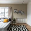 La cucina disposta a ferro di cavallo consente di avere i piani necessari sia per cucinare che per mangiare seduti sugli sgabelli. La zona soggiorno, allegra con i suoi cuscini giallo limone e il tappeto dalle fantasie geometriche, dispone di un comodo divano che per la notte diventa un letto matrimoniale (Attenzione: il divano letto non viene preparato per il vostro arrivo, perché riteniamo corretto che possiate usare il divano durante le ore non dedicate al sonno. Troverete lenzuola, cuscini e coperte nell’armadio/mensola più adiacente al divano.). Completa l’appartamento un moderno bagno con doccia.