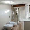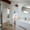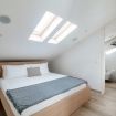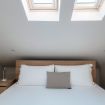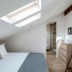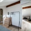 The master bedroom has a chest of drawers and a coat rack for wardrobe storage, and two skylights that give it warm natural light during the day and are windows for star gazing on romantic nights! There is also a bathroom in the room, with a modern, spacious shower.