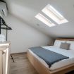 The large and bright open-plan living room consists of the dining area, with a table for 4, an attic sitting area, with a comfortable sofa and a flat-screen TV for watching a movie at the end of the day, and a corner kitchen, complete with appliances and equipped with everything you need to prepare lunches and dinners just like at home.