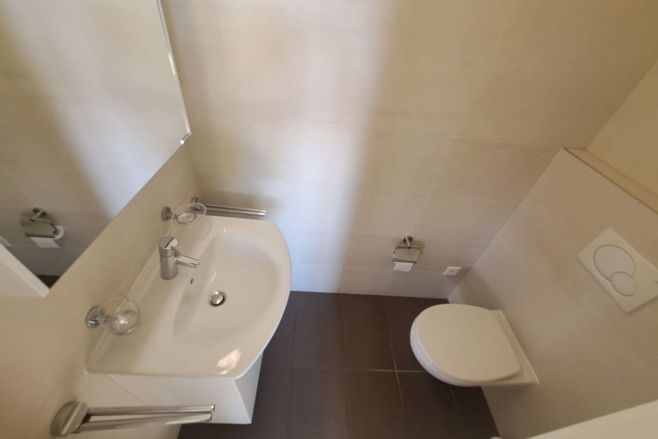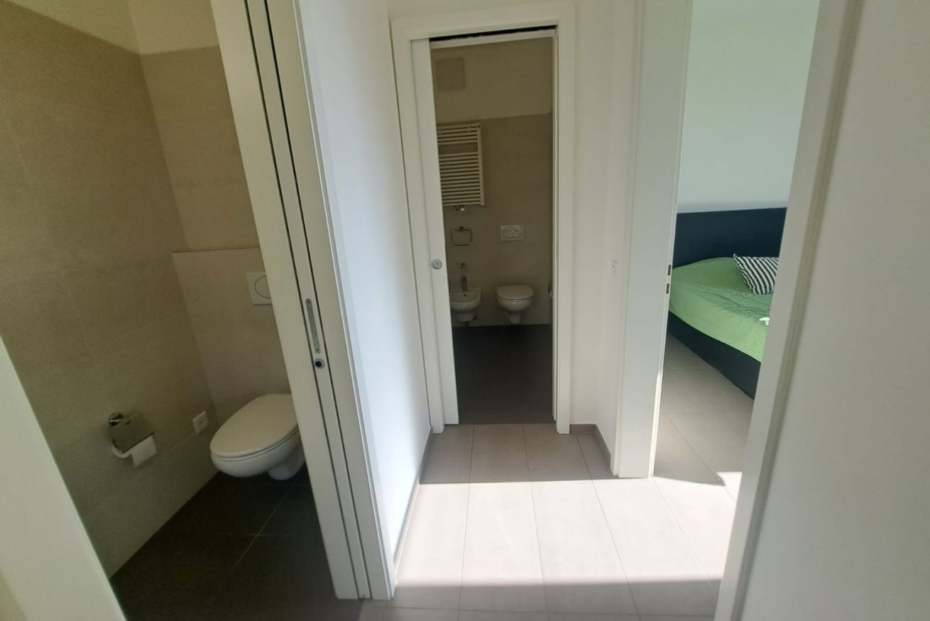 From the moment you enter, the apartment welcomes guests into a bright and well-maintained environment, immediately conveying a pleasant sense of calm and well-being. The living area features a cozy relaxation space with a sofa and TV, perfect for unwinding after a day of sightseeing and city experiences, as well as a modern white open-plan kitchen, fully equipped and adjacent to the dining area. The living room opens onto a large covered terrace, furnished with a table and chairs, ideal for enjoying relaxing moments outdoors while taking advantage of the area’s mild climate. The spacious and well-organized double bedroom is equipped with wardrobes and drawers, allowing guests to comfortably arrange their belongings even during longer stays. Neutral tones in the flooring and furnishings, combined with the predominance of white walls, create linear, clean, and comfortable spaces. The apartment is completed by a modern bathroom with a shower and wall-hung sanitary fittings, designed to offer functionality and comfort.