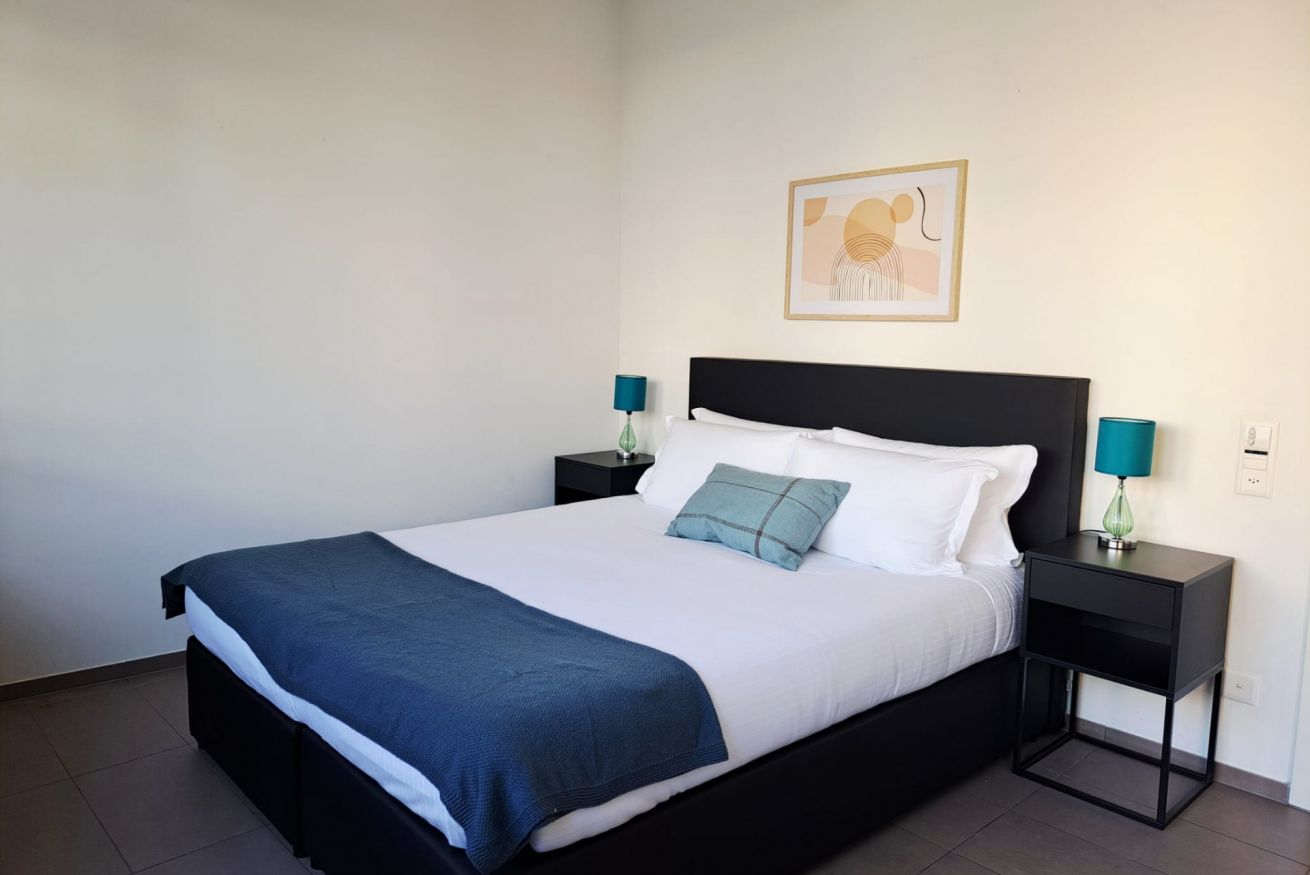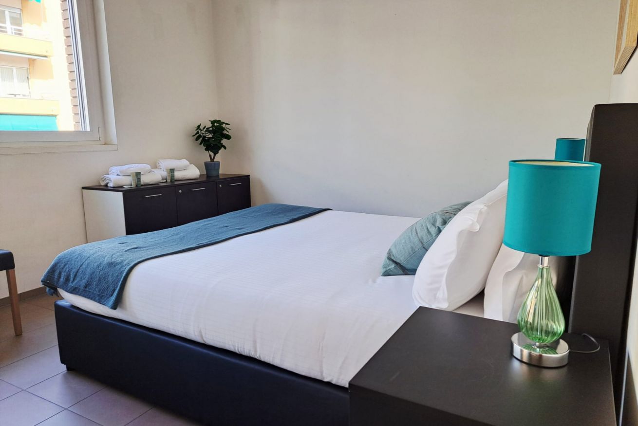 From the moment you enter, the apartment welcomes guests into a bright and well-kept environment, immediately conveying a pleasant sense of calm and well-being. The living area features a cozy relaxation space with a sofa and TV, perfect for unwinding after a day of sightseeing and city experiences, as well as a modern white open-plan kitchen, fully equipped and adjacent to the dining area. The living room opens onto a large covered terrace furnished with a table and chairs, ideal for enjoying relaxing moments outdoors while taking advantage of the area’s mild climate. The spacious and well-organized double bedroom is equipped with wardrobes and drawers, allowing guests to comfortably arrange their belongings, even during longer stays. Neutral tones in the flooring and furnishings, combined with the predominance of white walls, create linear, clean, and comfortable spaces. The apartment is completed by a modern bathroom with a shower and wall-hung sanitary fittings, designed to offer functionality and comfort.