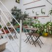 Welcome to OCEANO APARTMENT, a cozy, recently renovated two-room apartment perfect for up to 4 people, located in a central location in Trapani. Upon entering, you are greeted by the living area, with a fully equipped kitchen with everything you need to cook at home, a dining table for 4, and a comfortable sofa that converts into a double bed for the night. A large vintage mirror and original wooden slats decorating the walls give character to the room, along with the perfectly preserved 1970s terrazzo flooring. The bedroom has a double bed and a large wardrobe for storing your clothes. Here, the creative décor gracefully combines authentic recycled pieces, such as the bedside tables and chest, with contemporary touches such as modern lamps. The decorative frames embedded in the blue wall behind the bed are a relaxing reminder of the nearby sea. The apartment has two bathrooms, both with showers, to ensure maximum comfort for two couples or a family. Outside, a charming patio, shared with the adjacent “MARE APARTMENT,” with tables and chairs, is a welcoming place to sip a coffee in the morning or an aperitif in the evening, surrounded by tropical plants, where new friendships between travelers can blossom.