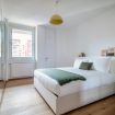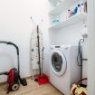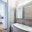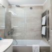 The master bedroom is comfortable and has a large closet to organize the wardrobe of all guests. The modern bathroom with bathtub completes the apartment.