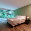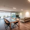 The large open-space living room consists of the TV area, with a comfortable sofa where you can devote yourself to relaxing, watching a movie on the flat-screen TV or reading a book; next to it is the dining area with a table for 6/8 people. Behind, there is the modern kitchen, with a central island, complete and equipped with the latest appliances and everything needed to prepare and serve meals. The living room has a panoramic window, from which you can access the large terrace of 65 sqm: it is here that you will enjoy the wonderful landscape of the lake, eating outdoors at the table for 8 people, sunbathing on the deckchairs or relaxing in the corner furnished with sofas and armchairs for 6.