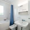 A bathroom with bathtub completes the apartment.
