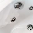 The bathroom is equipped with a toilet, sink, bidet and whirlpool bath for a relaxing experience. The living room is furnished in a minimalist style, with an L-shaped sofa and a flat-screen TV. The open space kitchen has a traditional dining table.