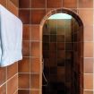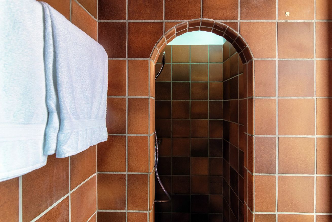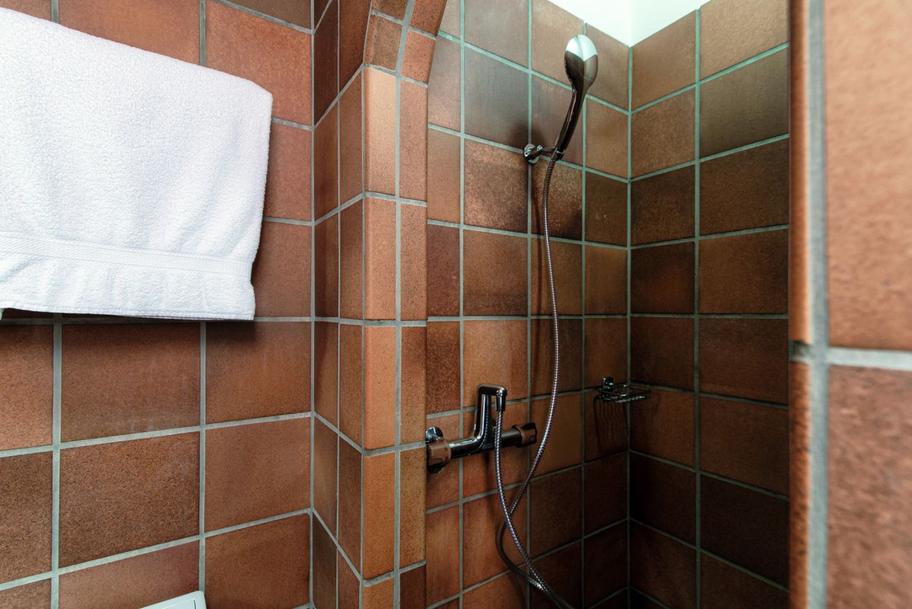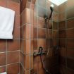 The functional bathroom is equipped with a toilet, bidet and a comfortable shower.