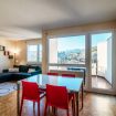 Discover Lugano from this bright four-room apartment less than 10 minutes’ drive away from the city centre, in the green hilly area of Pazzallo. Admire the landscape while you are having breakfast outside on the terrace at the 4-person table, or in the living room at the 6-person table, equipped with red pieces of furniture: the kitchen is fully equipped to prepare and serve tasty meals. The beautiful wood flooring is present also in the two double bedrooms and in the bedroom with bunk beds, thus making PAZZALLO 26 perfect for groups of 6 people. The apartment also features 2 bathrooms with shower. A towel set is included for each person, together with bed sheets and blankets; we also give you a courtesy kit. We also leave a basket with the necessary for a breakfast.