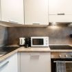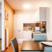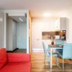 Next to the LUDES Campus, PAZZALLO 5 is a modernly furnished studio apartment, spacious like a two-room apartment and very bright! Perfect for students and professors of the LUDES School, but also for business stays or couples, because it is far from the chaos of the city but a few minutes drive from the center of Lugano. The living room is an open space that includes the TV area and the dining area, and a lively red sofa acts as a divider on the sleeping area, with a double bed and a large wardrobe for the guests' wardrobe. The small table is perfect for 2; the kitchen has all the appliances and is equipped for cooking and serving meals. The bathroom has a modern shower.