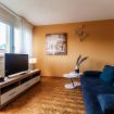 The living room is warm and welcoming: relax watching a movie on the sofa, which becomes a bed for two additional guests for the night (Please note: The sofa bed will not be prepared as a bed for your arrival, as we deem it proper to use it as a sofa during the day. You will find the bed linen, pillows and blankets in the wardrobe/shelf closest to the sofa.)! The relaxation will be immediate while admiring the greenery of this hilly area that frames Lugano from the balcony! The kitchen is independent and equipped with everything needed for preparing meals: have dinner with family or friends at the round table in the living room! Perfect for couples, families, students and business trips. PAZZALLO 6 has a double bedroom with a large wardrobe for your apparel. The bathroom is compact but functional, equipped with a bathtub and blue tiles.