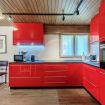 Upon entering, you will be greeted by a bright and spacious living room, furnished with a large 5-seater sofa for chatting and watching movies with friends; in front of it, there is the dining area with a table for 5/6 people and the brand new red kitchen, complete with appliances and everything you need to prepare lunches and dinners like at home. From this room you can access the private patio, overlooking the large condominium lawn, with a small table and chairs to enjoy the sun during nice days.