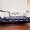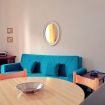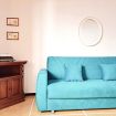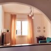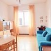 Upon entering, an arched opening in the hallway wall offers a first glimpse of the living room, furnished with a round dining table, a sideboard with TV, and a comfortable single sofa bed (Please note: the sofa bed is not prepared, we think it is proper to use the sofa during non-sleeping hours. You will find sheets, pillows and blankets in the closet/shelf most adjacent to the sofa). The warm tones of the furniture create a welcoming and relaxing atmosphere, brought to life by the bright blue fabric of the sofa, adding a touch of personality and freshness. The separate eat-in kitchen is fully equipped and perfect for those who want to feel at home even while on vacation. It’s the ideal spot to prepare tasty meals using local ingredients or enjoy a quick breakfast at the handy adjacent table. The sleeping area includes two large bedrooms—one double and one triple with a double bed and a single bed—perfect for couples or families. The bathroom, equipped with a shower and washing machine, ensures practicality and comfort even for longer stays.