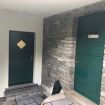Next to the entrance door there is another green door that leads to the shared laundry room.