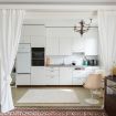 Next to it, the dining area with a table for 4, and the fully equipped kitchen, which can be separated from the living room with a curtain. Here a small table with two stools is the perfect place to enjoy a glass of wine while cooking!