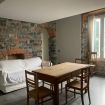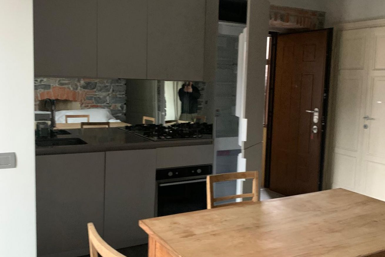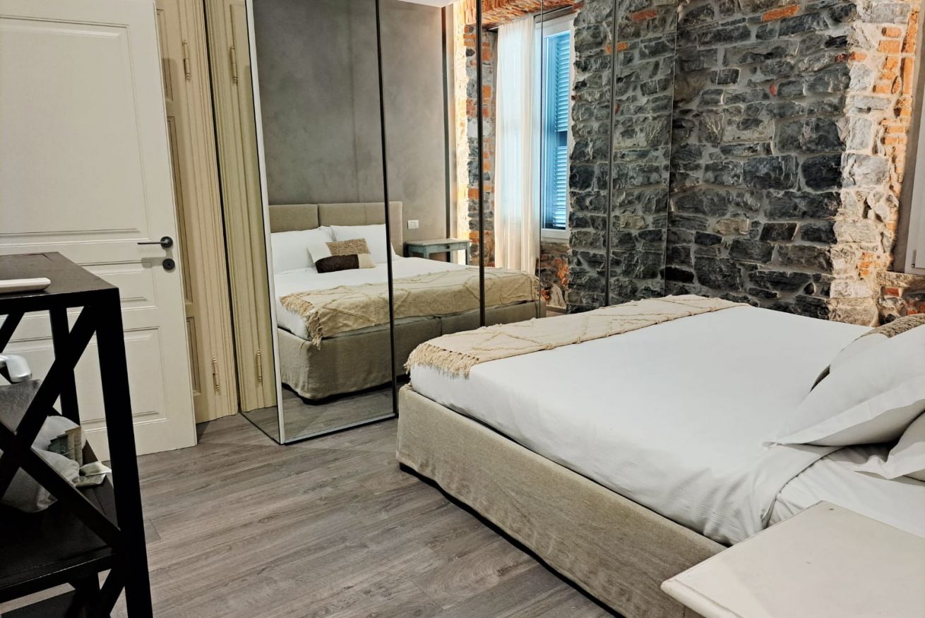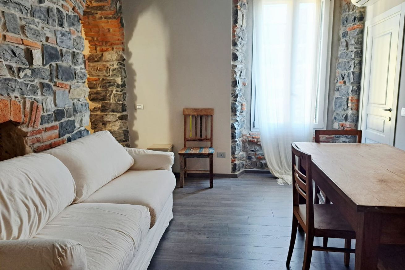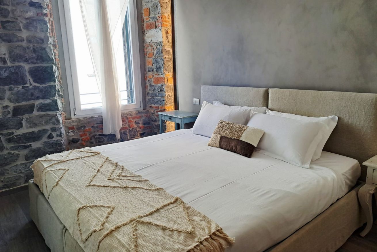 Located on the second floor, the apartment blends historic details with modern furnishings: exposed stone and brick walls harmonize with clean lines and light tones, creating a warm and welcoming environment. A perfect balance between old-world charm and contemporary comfort. Upon entering, you find the living area, with a modern open-plan kitchen and wooden dining table, accompanied by a double sofa bed and a TV cabinet—ideal for relaxing after a day exploring the lake and cobblestone streets. (Please note: the sofa bed is not set up for arrival, so you can use it freely during the day; sheets, pillows, and blankets are available in the wardrobe or nearby shelf). The bedroom, thoughtfully designed, features a comfortable double bed and a large wardrobe for easy organization. The apartment is completed by a spacious bathroom with a shower, featuring the same rustic details that make the property unique.