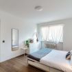 The bedroom has a double bed, with a spacious wardrobe for storing your apparel even for longer stays. A bathroom with bathtub and shower completes the apartment.
