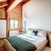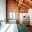 Going up the stairs, you reach the sleeping area: there are two bedrooms, both double. Two chests of drawers in one, a wardrobe and a chest of drawers in the other are ideal for storing the wardrobe of the whole group. The spectacular mountain panorama can be seen from all the windows.