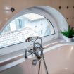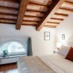 There are two bedrooms, both doubles, which are spacious and furnished with chests of drawers and niches to keep your wardrobe in order. From the original semi-circular windows you can see the surrounding landscape.