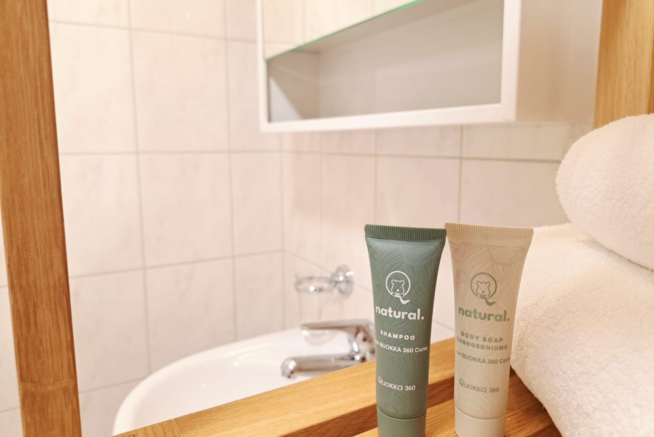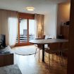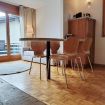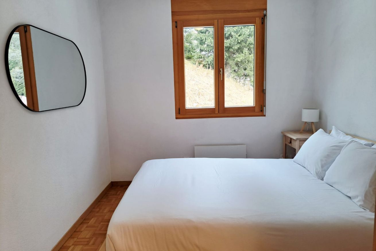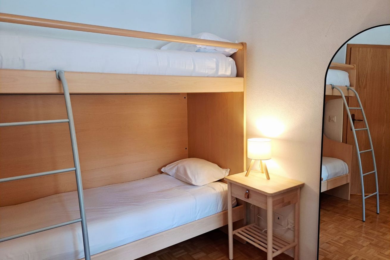 Located on the first floor, it welcomes guests with a small hallway that leads to the bright living area, harmoniously divided between a fully equipped kitchen and a cozy corner with a sofa and TV. The kitchen peninsula, which also serves as a dining table for four, creates an elegant and functional balance between the spaces. A large French door opens onto the private balcony, a true quiet corner where you can be enchanted by the view: snowy mountains in winter, lush forests and Alpine scents in summer. The sleeping area includes a double bedroom and a second bedroom with a bunk bed, perfect for families or small groups of friends. The parquet floors and wooden furnishings envelop the spaces in a warm and authentic atmosphere, turning the apartment into a welcoming retreat after a day of outdoor exploration. A simple and classic-style bathroom with a shower completes the apartment.
