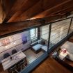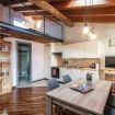 Climb the beautiful ladder to reach the loft, where there is a double bed and furniture for storing your warderobe.