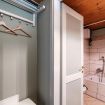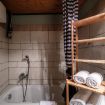 The small apartment is completed by a bathroom with a bathtub.