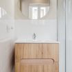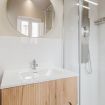 This space, part of a recently renovated apartment, comprises two carefully furnished bedrooms. The first room, spacious and bright, features a double bed, a large wardrobe, and a chest of drawers to organize your stay efficiently. The ceiling decorations, with elegant moldings, create a harmonious contrast with the contemporary style of the furnishings and the emerald green wall behind the bed. The second room, more compact yet well-arranged, is furnished with a spacious loft bed (for 1 adult or two children), leaving space for two wooden armchairs and a small table, ideal for children or teenagers. Although there is no kitchen, guests have access to a kettle and a coffee machine to prepare hot beverages independently. The modern-designed bathroom is equipped with a shower. Both rooms are air-conditioned, ensuring a pleasant stay even during the hottest periods.
