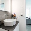 Finally, a bathroom with shower, washing machine and dryer for private use concludes the apartment.