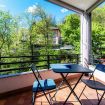 The open space studio apartment has a double bed and a comfortable sofa where you can relax and watch a fil on the flat-screen TV, a sofa that becomes a single bed for the night (Please note: The sofa bed will not be prepared as a bed for your arrival, as we deem it proper to use it as a sofa during the day. You will find the bed linen, pillows and blankets in the wardrobe/shelf closest to the sofa.). The kitchen is fully equipped and will allow you to prepare delicious meals to be enjoyed in total tranquility at the dining table, or on the terrace during warm weather. Overlooking the surrounding woods, the private terrace is the perfect place to enjoy breakfast in the sun or relax with a glass of wine at sunset.