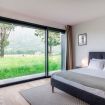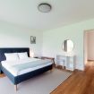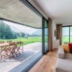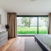 The apartment features a stylishly decorated double bedroom, enhanced by a beautiful French door that opens onto the surrounding nature, offering a complete immersion in the landscape.