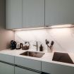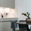 The kitchen is modern and complete with everything you need to prepare lunches and dinners like at home, to be enjoyed on the round table for 4.