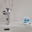 The marble-effect bathroom provides comfort thanks to the spacious shower and is carefully designed down to the last detail. As an excellent plus there is also a washing machine.
