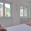 On holiday in Lugano with the family, as a couple, or on a business trip? Whatever your type of stay, from the first moment you enter you will feel at home in this well-equipped, modern and functional flat, URBAN 7, with its minimal-chic design. This elegant three-room apartment, located in a new building, is characterised by its brightness and well-organised spaces. The open-plan living room, furnished with a modern, fully equipped kitchen, is ideal for those who enjoy cooking and hosting. The table is suitable for lunches and dinners for couples or company. The living area has a TV and a sofa bed that converts into a comfortable double bed for guests if required. (Please note: The sofa bed will not be prepared as a bed for your arrival, as we deem it proper to use it as a sofa during the day. You will find the bed linen, pillows and blankets in the wardrobe/shelf closest to the sofa.) The sleeping area includes a spacious double room with a large wardrobe and a single room perfect for a child or for a shared stay with colleagues/friends. The bathroom, in elegant marble, has a shower and bidet. As an excellent plus there is also a washing machine. A private balcony completes the flat, providing an outdoor space to relax or enjoy the view while sipping a drink.