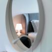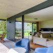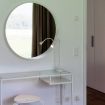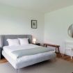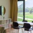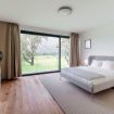 The apartment features a stylishly decorated double bedroom, enhanced by a beautiful French door that opens onto the surrounding nature, offering a complete immersion in the landscape.
