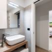 The spacious open-plan layout is designed to make the most of every corner, creating a perfect blend between the living and sleeping areas. Upon entering, the comfortable double bed provides a peaceful retreat, turning the space into a quiet corner to recharge after a day spent exploring the historic centre and lakeside. The modern sage green kitchen, tucked into a private corner, is fully equipped for home-style cooking, while the dining table is ideal for both working and enjoying a meal with company. The bathroom features a shower, ensuring maximum convenience.