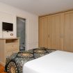 Quality bedding, towels and a courtesy kit are provided.