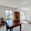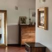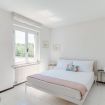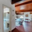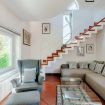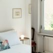 Inside, guests are welcomed into a spacious living area, illuminated by sunshine entering through the large arched window, furnished with a sofa and armchairs for chatting with friends or reading a book, also chosen from the large bookcase. You can study or work at the desk.