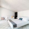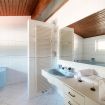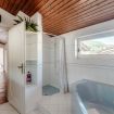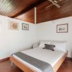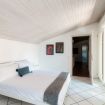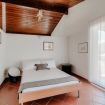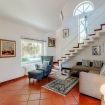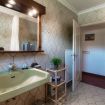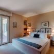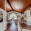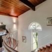 Going up the stairs you enter the sleeping area. In the hall between the rooms, there is a nice desk well lit by natural light. There are four bedrooms: three double bedrooms and one bedroom with a French bed. On this floor there are two more bathrooms, one with a bathtub and one with a shower. On this level there is also a terrace overlooking the garden, by which the villa is surrounded.