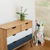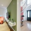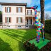 Crossing the garden a colorful sculpture of a giraffe welcomes guests, giving an advance of creativity that the building reveals inside.