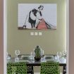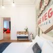The villa has 4 entrances. Entering from the central one, you walk along a corridor that leads to the large living room. The canvases with Banksy's works begin here, and are the trait d'union between the rooms all different and unique.