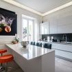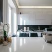 On the left is the modern kitchen equipped with everything you need to prepare lunches and dinners, and also spacious for breakfast, a quick snack or an aperitif on the counter, sitting on the stools with special shapes.