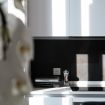 The sofa offers comfortable seating for 5 people, and together with the two ottomans makes a perfect cinema area, where you can enjoy HD movies on the 65-inch TV.