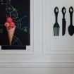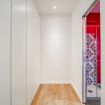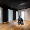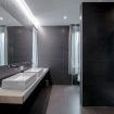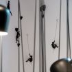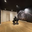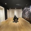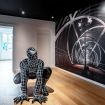 Going up you enter the sleeping area. Crossing the threshold you will have the feeling of entering the set of a Marvel movie: the dark fiberglass spiderman seems ready for action surrounded by the white doors, looking at the black wall and ceiling that gives the illusion of a secret passage to a 3D gallery.