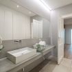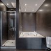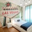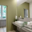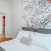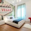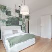 On the right, there is the Green room, the second master bedroom, with its wall with green cubes and palm trees: this room too has its own private walk-in closet, perfect for the most well-stocked wardrobe. The walk-in closet leads to the master bathroom with two sinks a 6-person whirlpool tub and a shower.