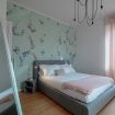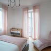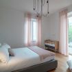 Also on the left side, the room Pink, large and bright with a window facing the lake is a French door that allows access to the terrace divided between the lake and garden. Enjoy the view even when lying down, on the double bed and on the powder pink chaise longue.
