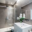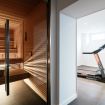 Back up the beautiful stone staircase and down two floors you reach the basement, with an area dedicated to wellness: exercise in the fitness room with bike, elliptical and treadmill, finish your workout in the spacious 8-person sauna and finally relax with a long shower in the modern bathroom next door.