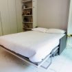The living room is bright and spacious, consisting of the TV area with a comfortable sofa, behind which a double foldaway bed is hidden to create the sleeping area (The bed is a drop-down bed and the pillows with the duvet are in the wardrobe/cupboard). Next to it, the table for 4 is comfortable for working and dining, positioned in front of the corner kitchen, complete and equipped with everything you need to prepare meals like at home.