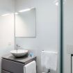 The apartment has a small balcony. A bathroom with shower completes the apartment.